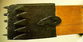 Σε κάθε πλατιά πλευρά του διακοσμείται με κεφαλή κριού. Στη διακόσμηση αυτή οφείλει και την ονομασία του. Τα δόντια είναι λυγισμένα και φθαρμένα, γεγονός που φανερώνει ότι είχε χρησιμοποιηθεί ως πολιορκητική μηχανή πριν αφιερωθεί στο ιερό του Δία της Ολυμπίας.